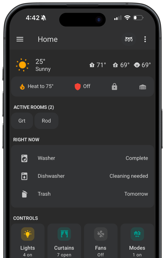 - Alerts that lacked context or actionability (e.g., vague “Garage Open” messages) were easily dismissed. I refined those to include specific prompts or conditions (“Garage has been open for 15+ minutes. Tap to close?”).